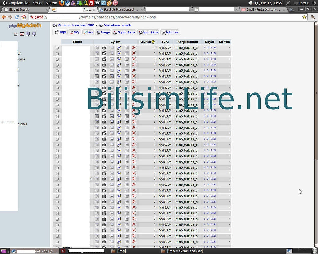 Bu arada phpMyAdmin’de sql tablonuzun karşılaştırma değerleri şu şekilde gözükmeli: