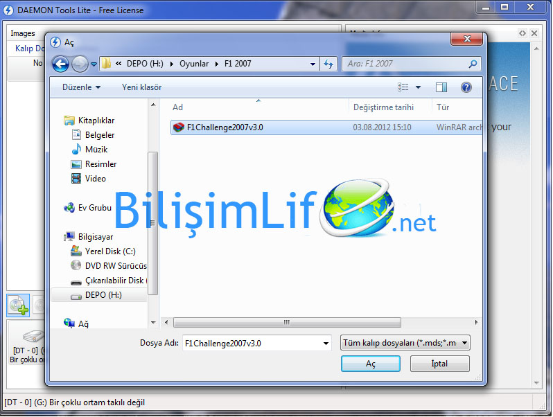 Kırmızıyla kare içerisine alınmış alana tıkladığımızda kalıp dosyası seçmemizi istiyor. Örnek olarak elimde bulunan bir oyunu seçeceğim. ISO kalıbını seçiyorum ve aç diyorum.
