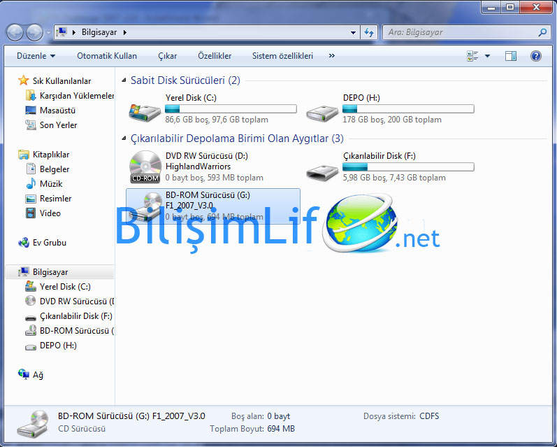 Yerleştirme işlemi bittikten sonra bilgisayarıma girelim ve sürücümüze bakalım, gerçekten kalıbı yerleştirmiş mi.