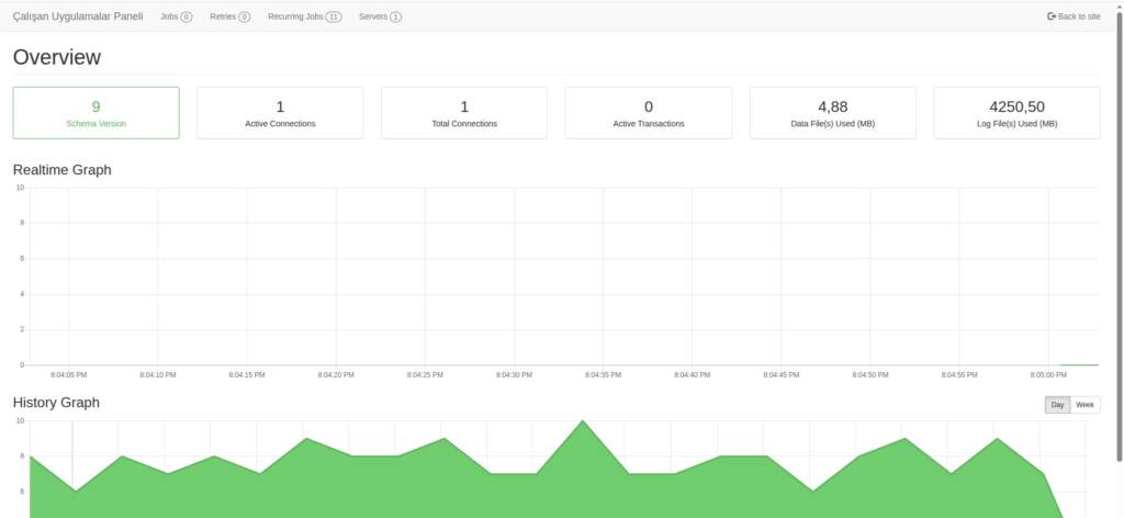 Hangfire yapılandırmasını ve panel arayüz ile ilgili düzenlemelerimizi yaptık. Şimdi uygulamayı çalıştıralım.