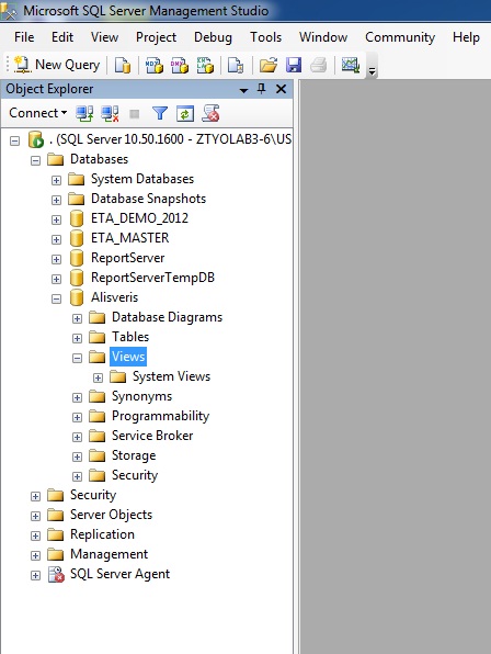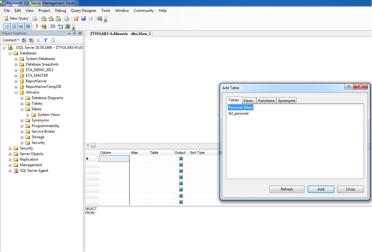 Bunun için SQL Server’da veritabanının içinde Views bölümüne gelelim.