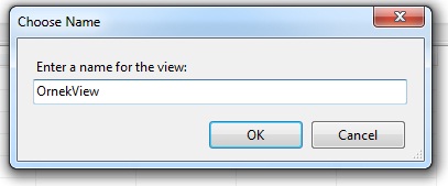 Tabi her zaman bu işlemi yapıyorsak, view’ı kaydedebiliriz. Bunun için ctrl+s yaparak kaydedelim. Ardından bir isim verelim. Kaydettikten sonra Views kısmına geldiğini görebiliriz.
