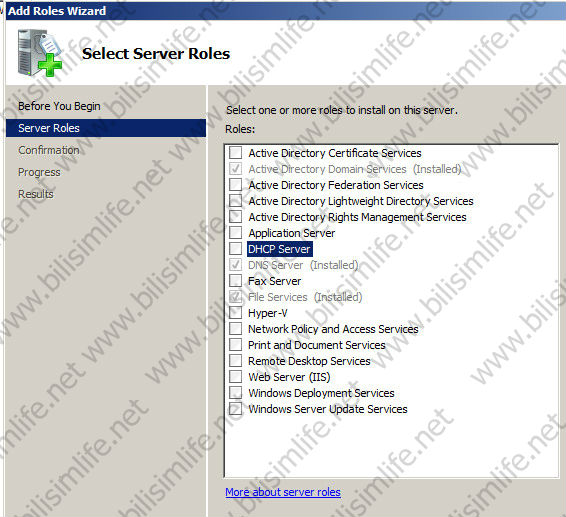 Roller kısmından DHCP Server’ı seçelim.